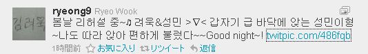 ふと目が覚めたら リョウクがまたツイ。