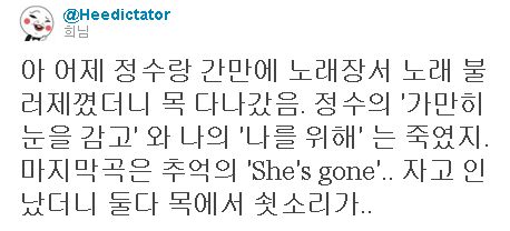 あ 昨日 ジョンスと久々カラオケで歌いまくってたら 喉がイカレタ。