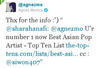 Best Asian Pop Artist 1位に アグネスが選ばれたという