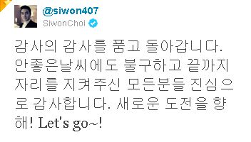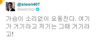 シウォンのTwitterを辿るのが中心になってます^^自分の今の気持ちと記憶を残すためblogなので情報・画像等は乏しくかつ時系列を無視してますのでご了承下さい^^