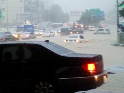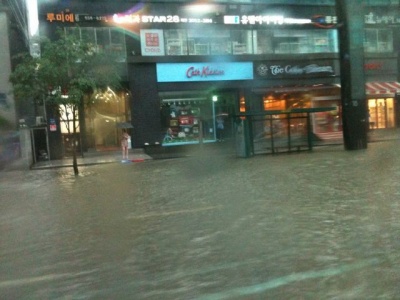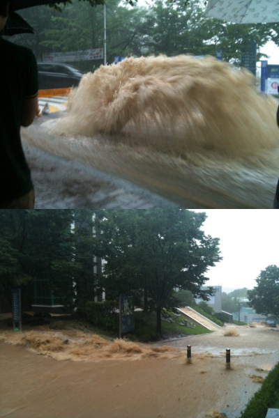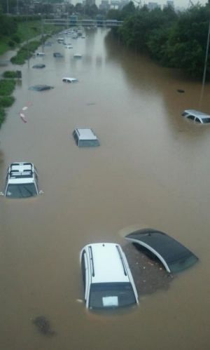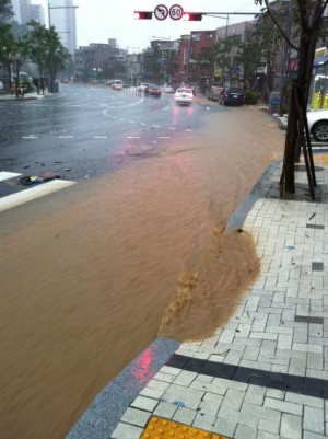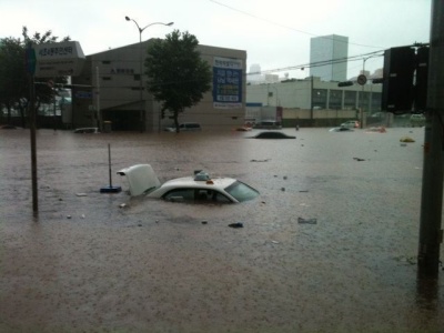 今 韓国では もの凄い豪雨、暴雨で