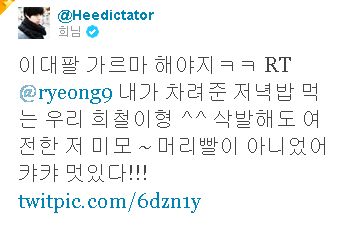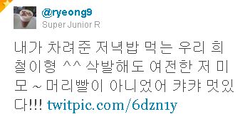 僕が 準備した夕食を食べる ウリ ヒチョルヒョン^^ 丸刈りにしても