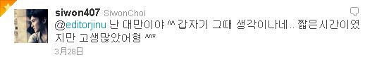 久しぶりの シウォンのツイ^^