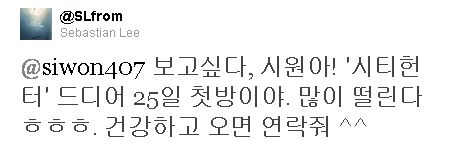 会いたいよ、シウォン!「シティーハンター」ついに25日 初放送だよ。