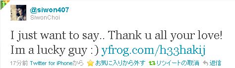 シウォンのTwitterを辿るのが中心になってます^^自分の今の気持ちと記憶を残すためblogなので情報・画像等は乏しくかつ時系列を無視してますのでご了承下さい^^